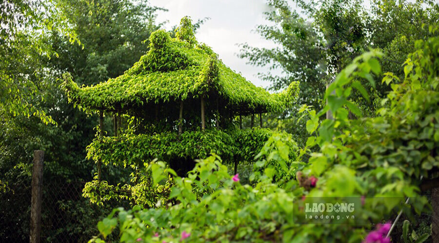 On the road leading to the village, on both sides are two rows of lush green trees with all kinds of trees, each tree has its own style of the gardener. The trees with different shapes and positions are meticulously and carefully pruned.